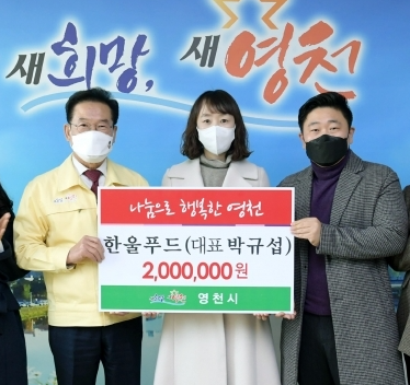 [경상매일신문=유병탁기자]영천시는 지난 28일, ‘희망2021 이웃돕기 나눔캠페인’ 성금으로 한울푸드에서 200만원과 (사)대한노인회 영천시지회 서부동분회에서 50만원을 기탁 받았다.